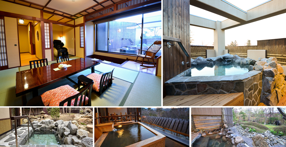 34실의 객실 중 28실에 노천탕이 설치되어 있습니다. 료칸 안은 다다미가 깔려 있어서, 일본의 분위기를 느끼실 수 있으리라 생각합니다.